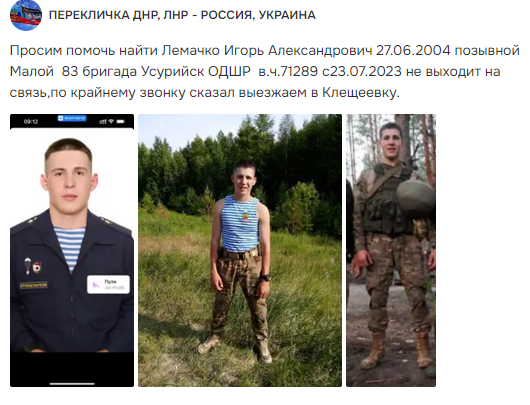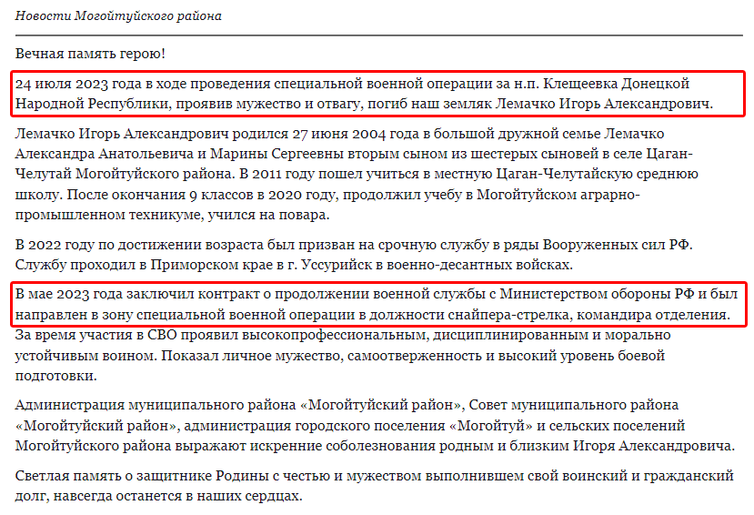 Скриншот сообщения о гибели
