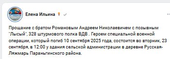 Скриншот сообщения о гибели