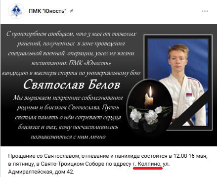 Скриншот сообщения о гибели