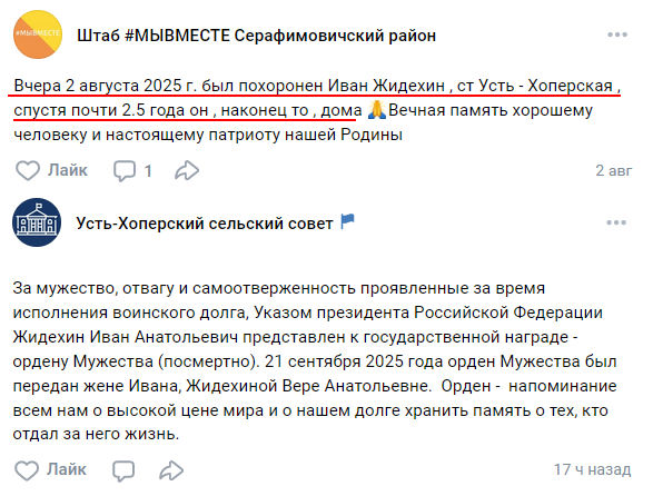 Скриншот сообщения о гибели
