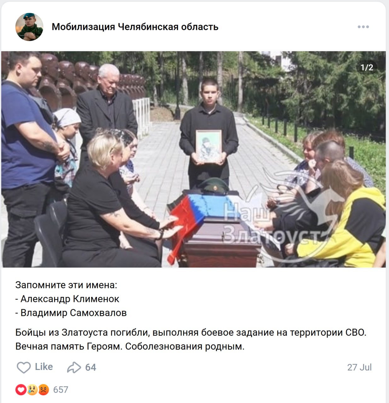 Дата сообщения о гибели: