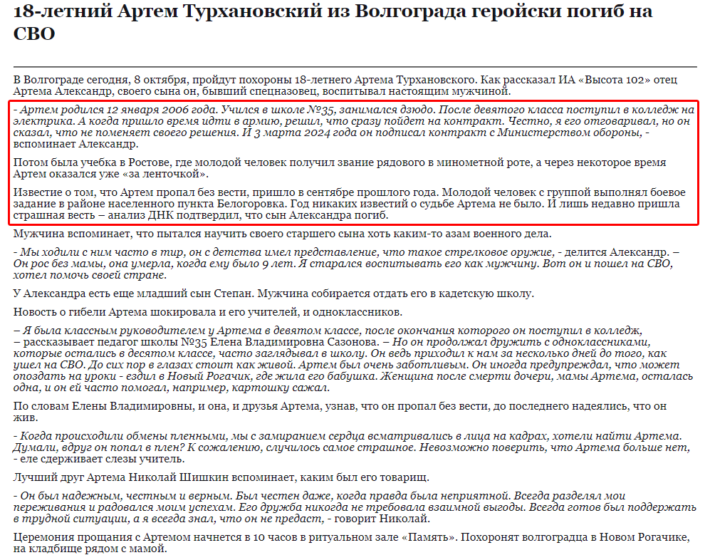 Скриншот сообщения о гибели