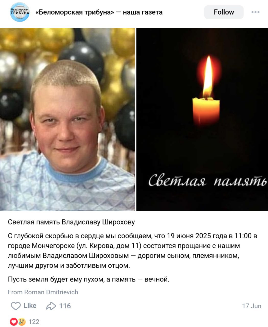 Дата сообщения о гибели: 13.10.2025