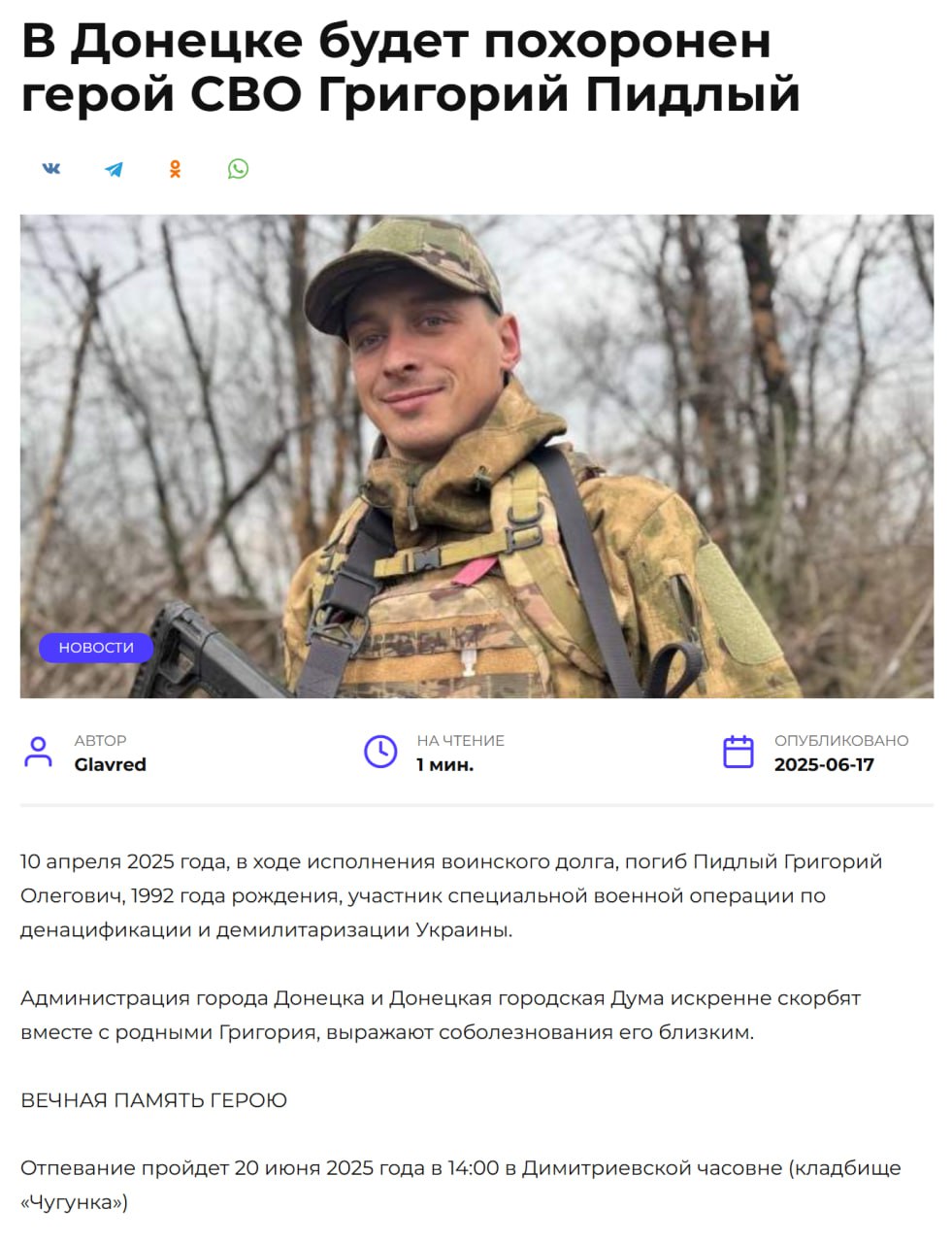 Дата сообщения о гибели: