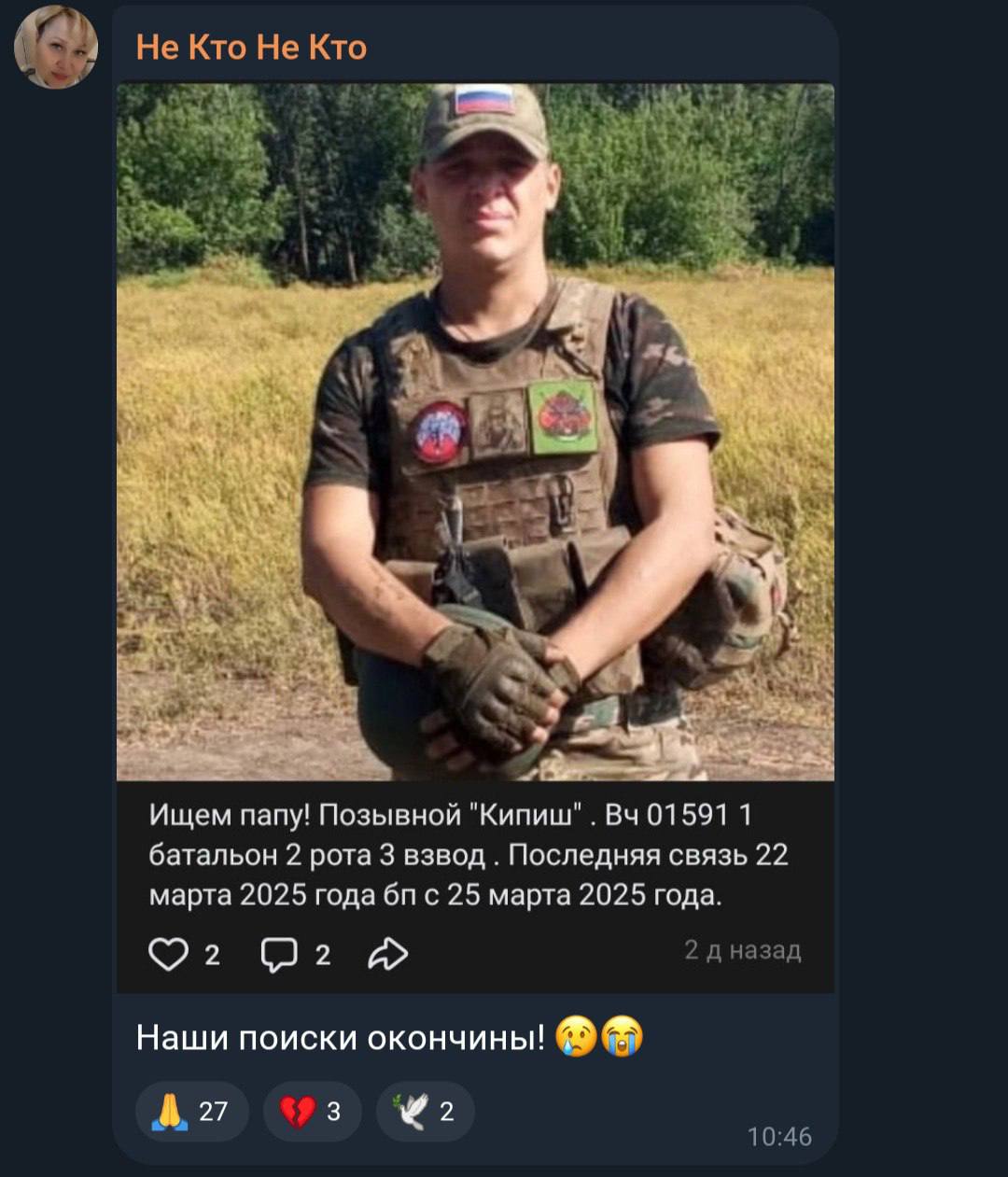 Статус: Подробные данные по данному погибшему получены и обрабатываются.