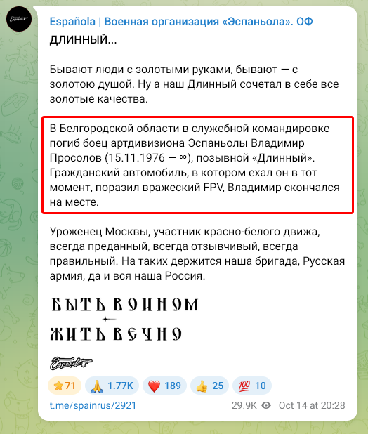 Дата сообщения о гибели: 14.10.2025
