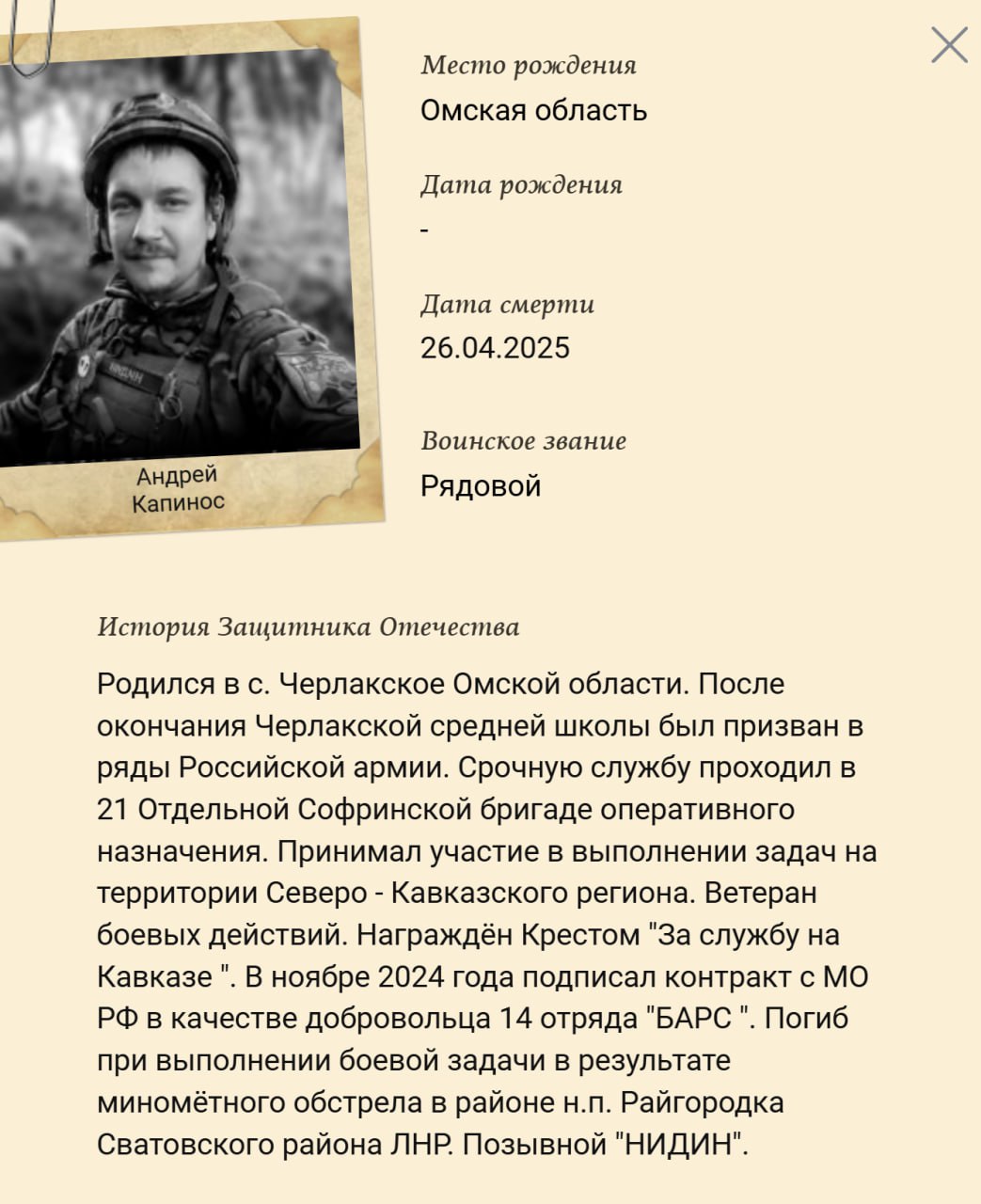 Дата сообщения о гибели: 16.10.2025