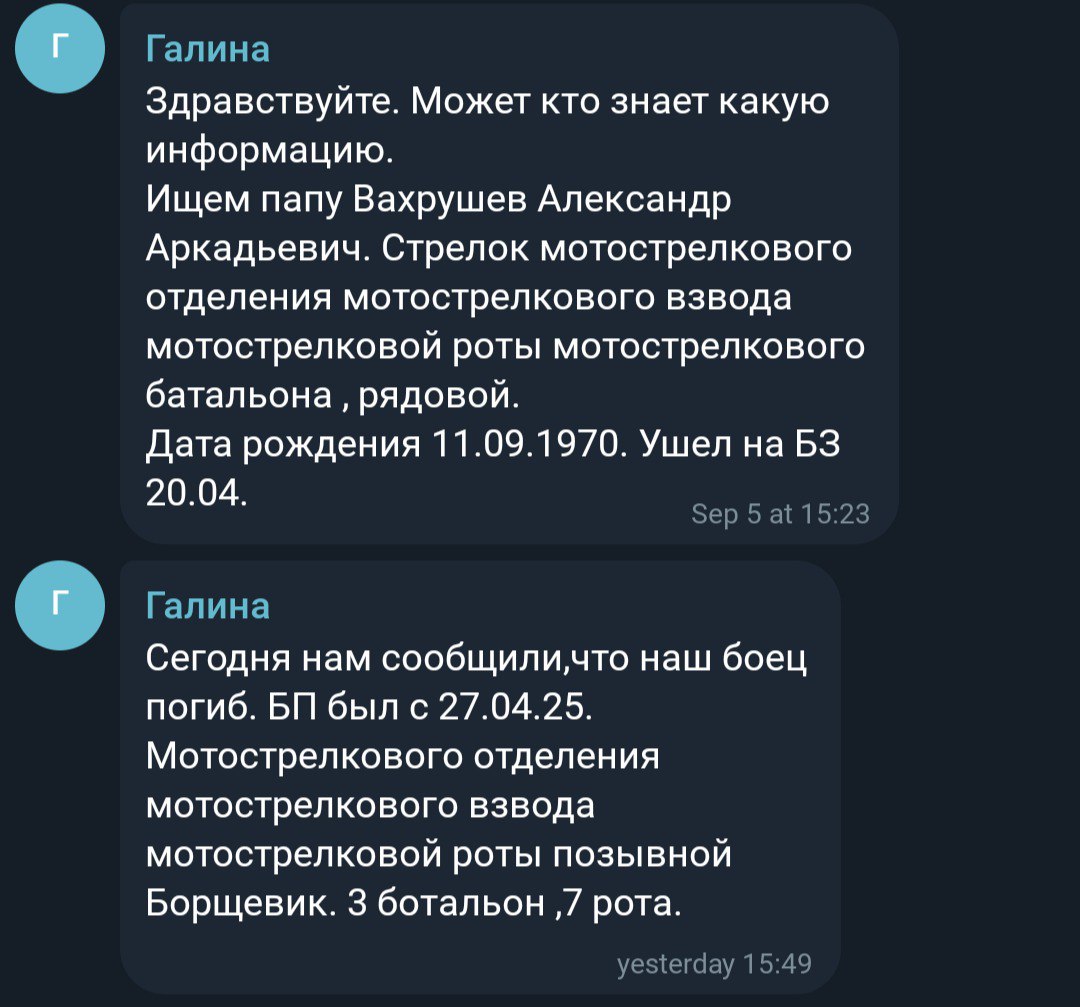 Дата сообщения о гибели: