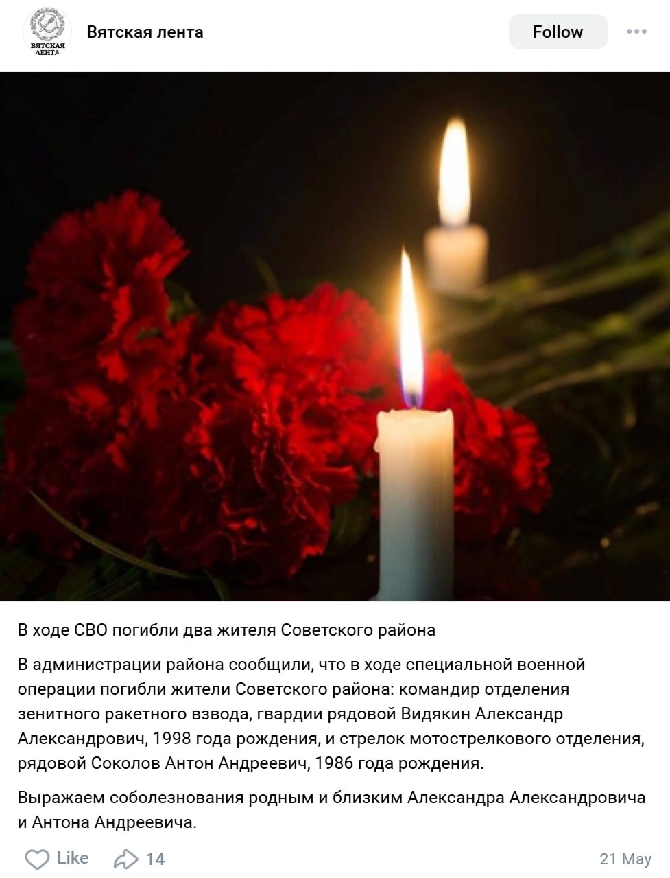 Дата сообщения о гибели:
