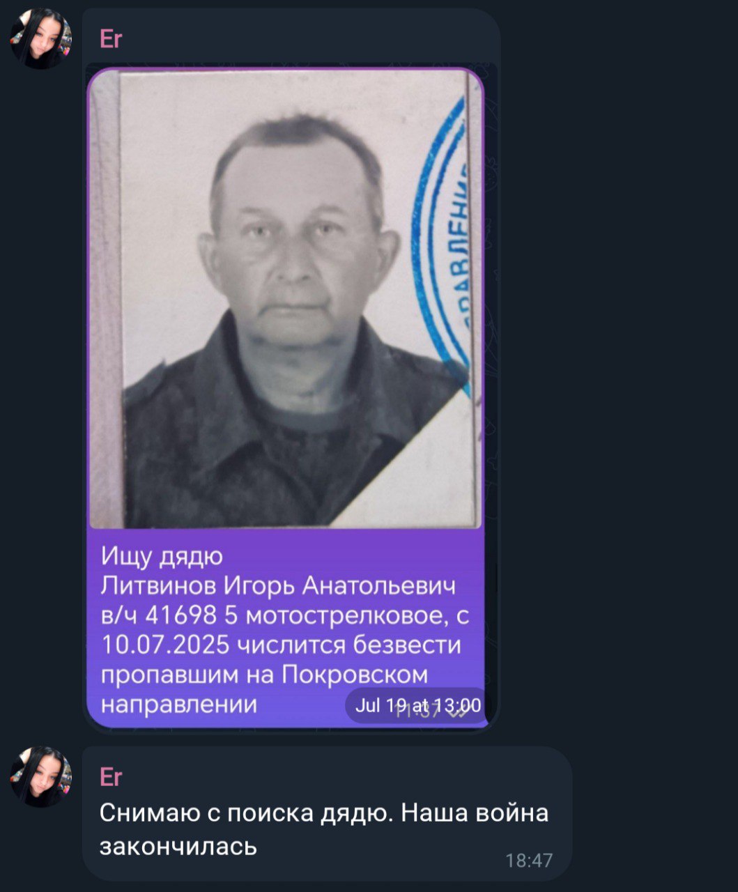 Дата сообщения о гибели: