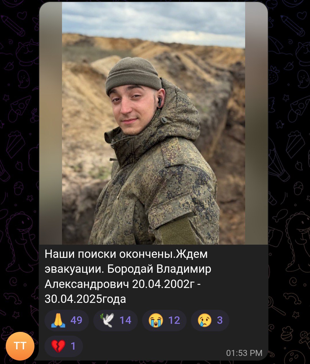 Дата сообщения о гибели: