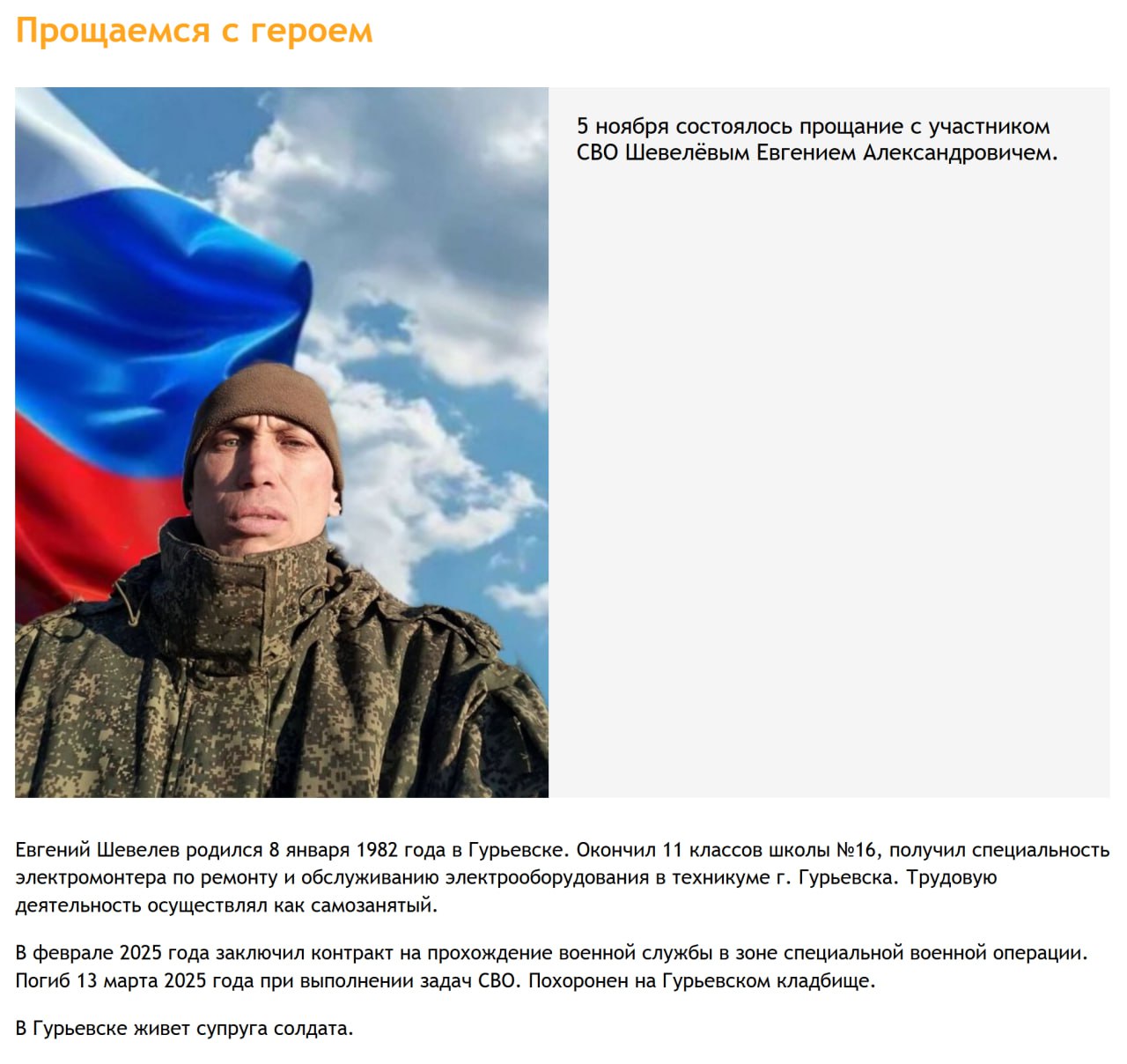 Дата сообщения о гибели: