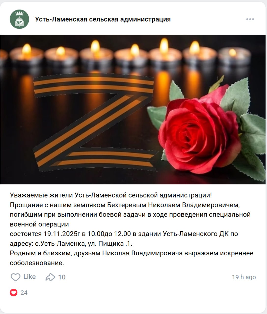 Дата сообщения о гибели: