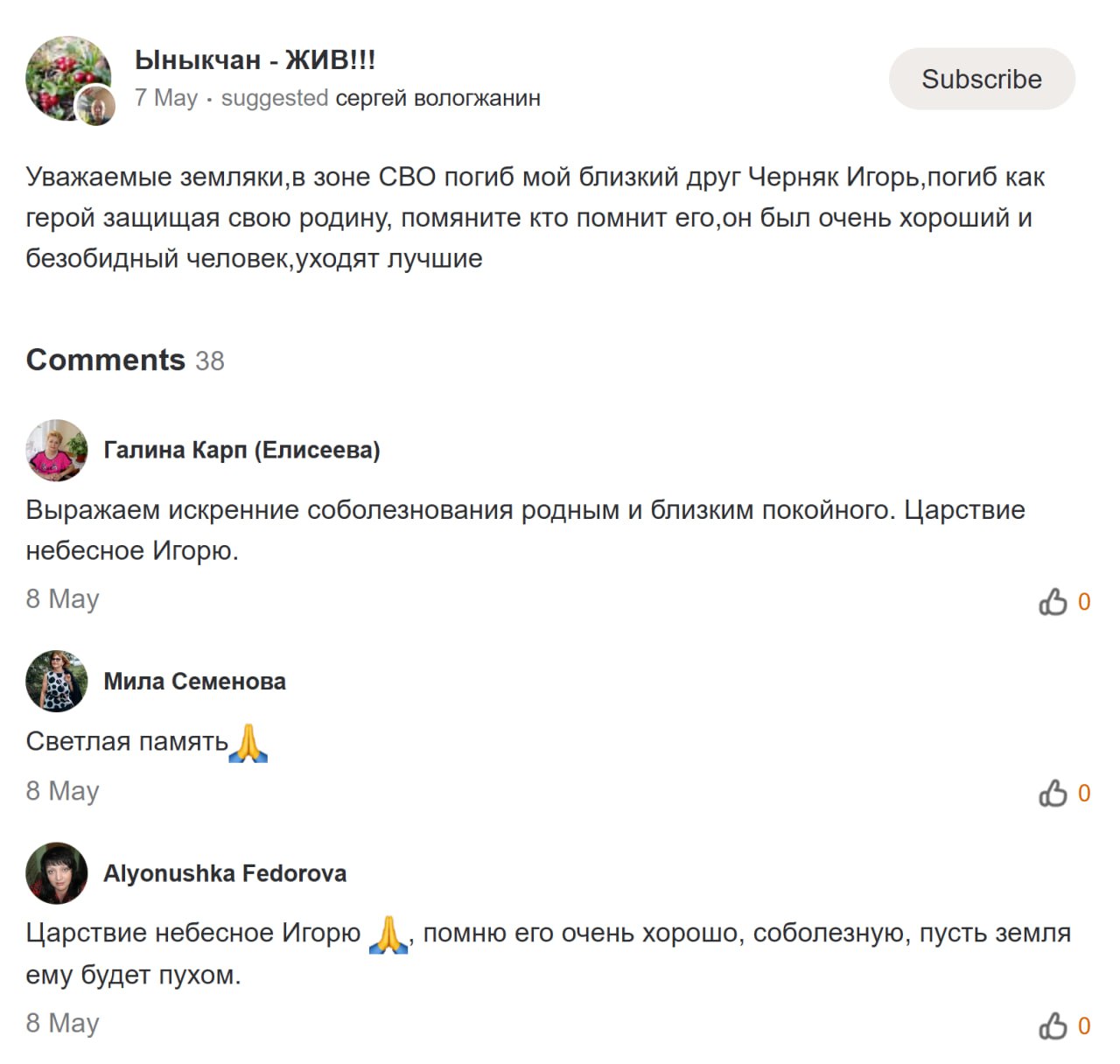 Статус: Подробные данные по данному погибшему получены и обрабатываются.