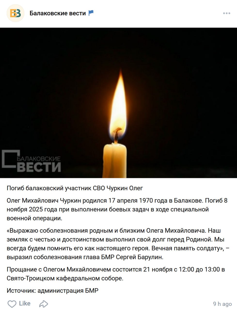 Дата сообщения о гибели:
