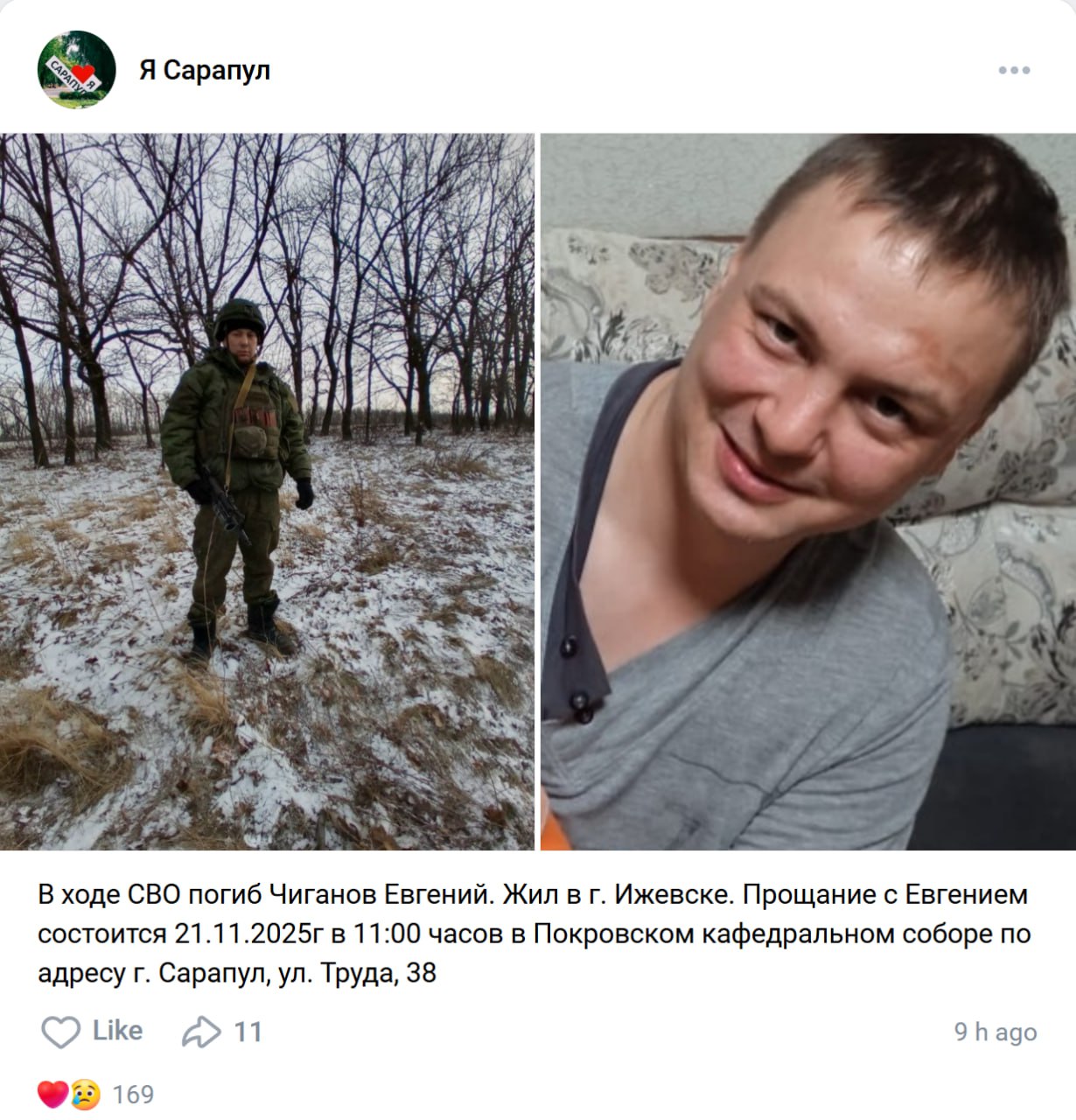 Дата сообщения о гибели: 20.11.2025