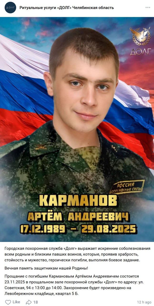 Дата сообщения о гибели: