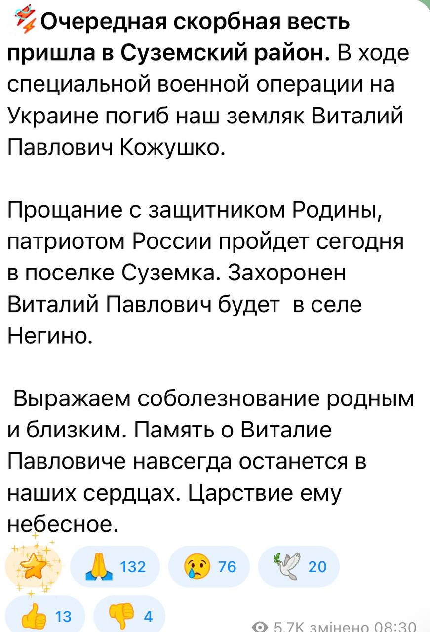 Дата сообщения о гибели: