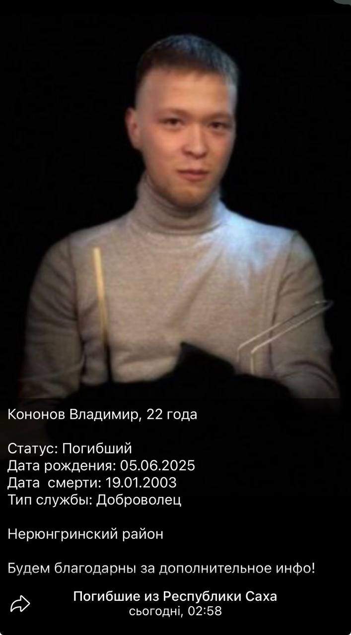 Статус: Подробные данные по данному погибшему получены и обрабатываются.
