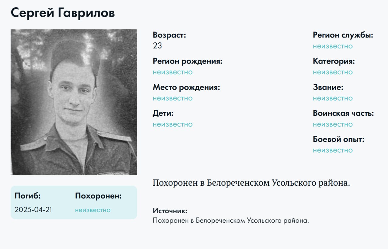 Статус: Подробные данные по данному погибшему получены и обрабатываются.
