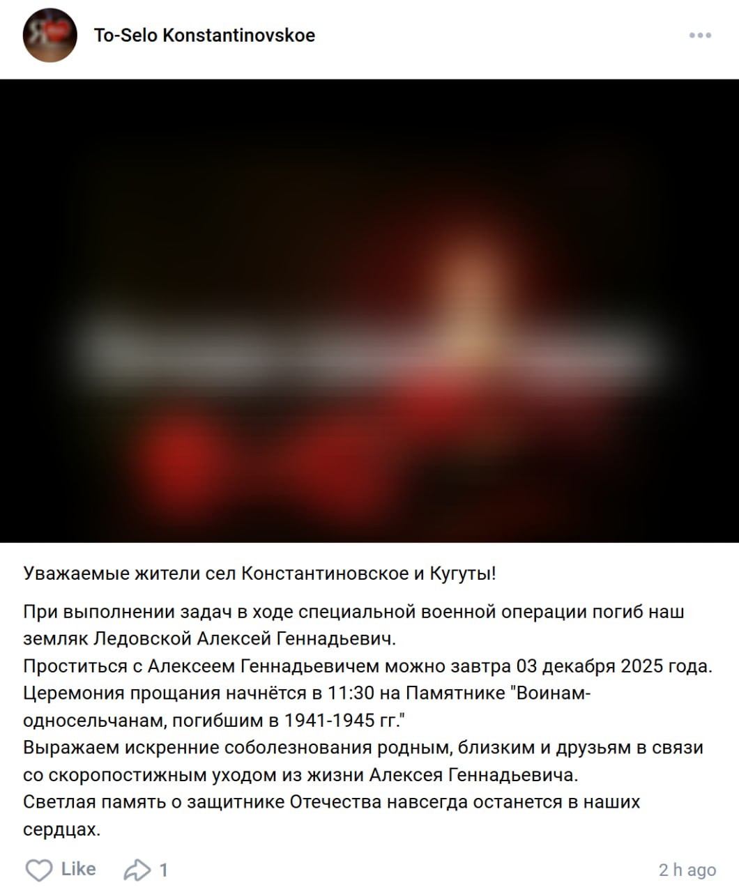 Дата сообщения о гибели: