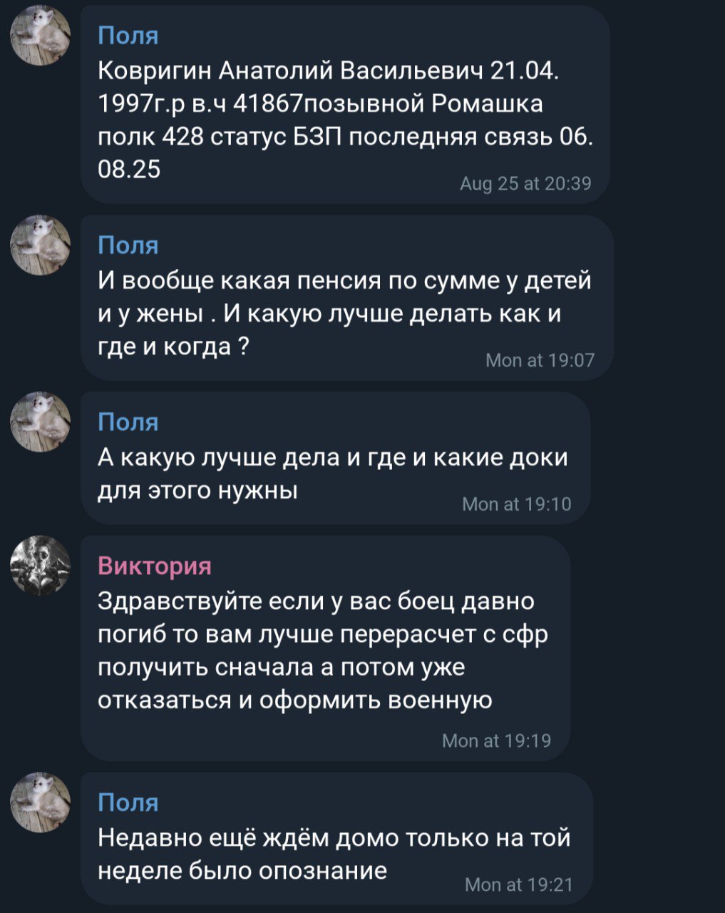 Дата сообщения о гибели: