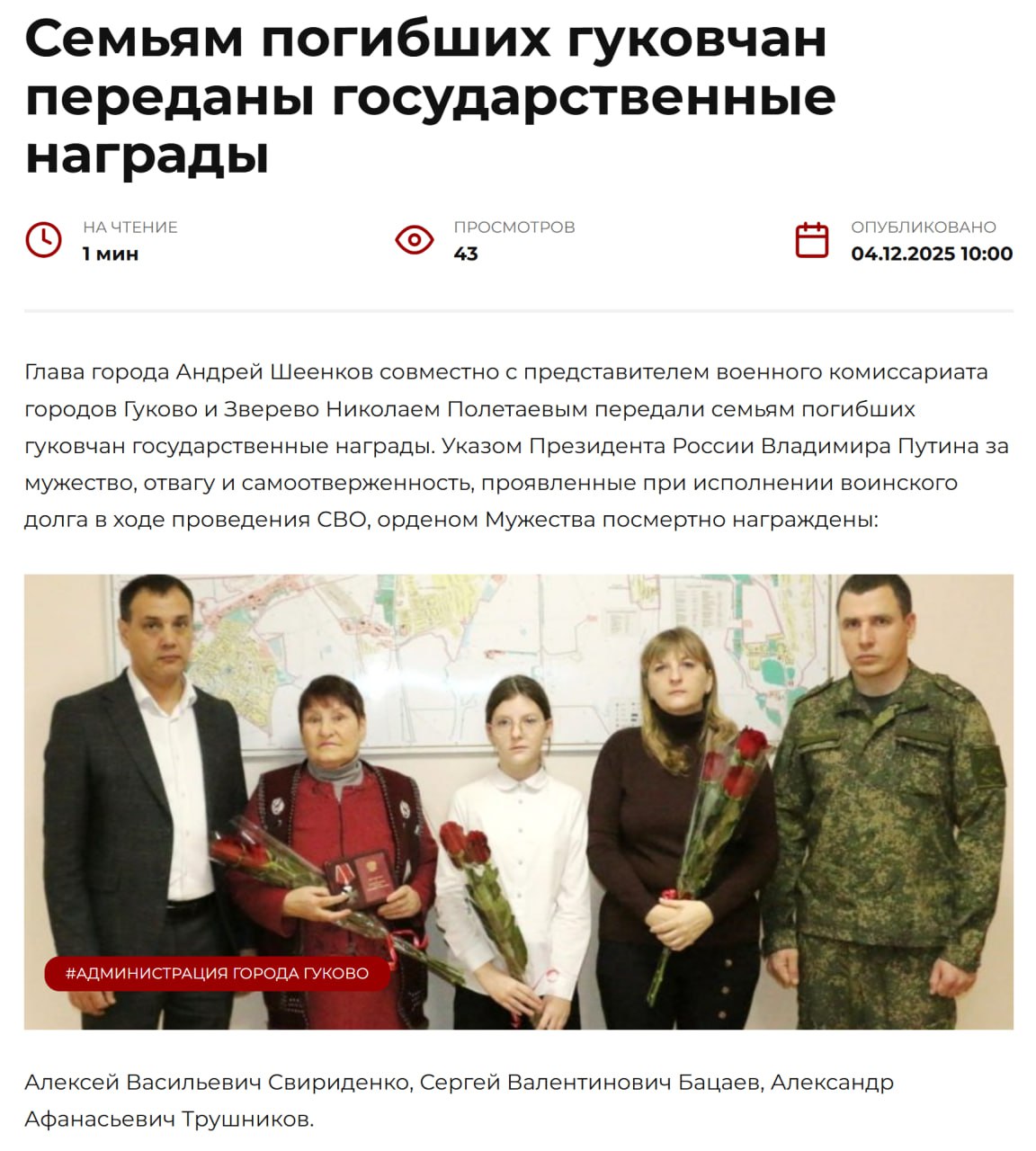 Дата сообщения о гибели: