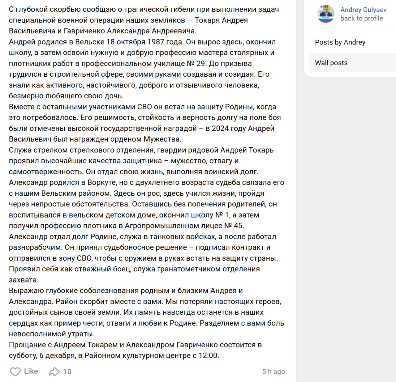 Дата сообщения о гибели: