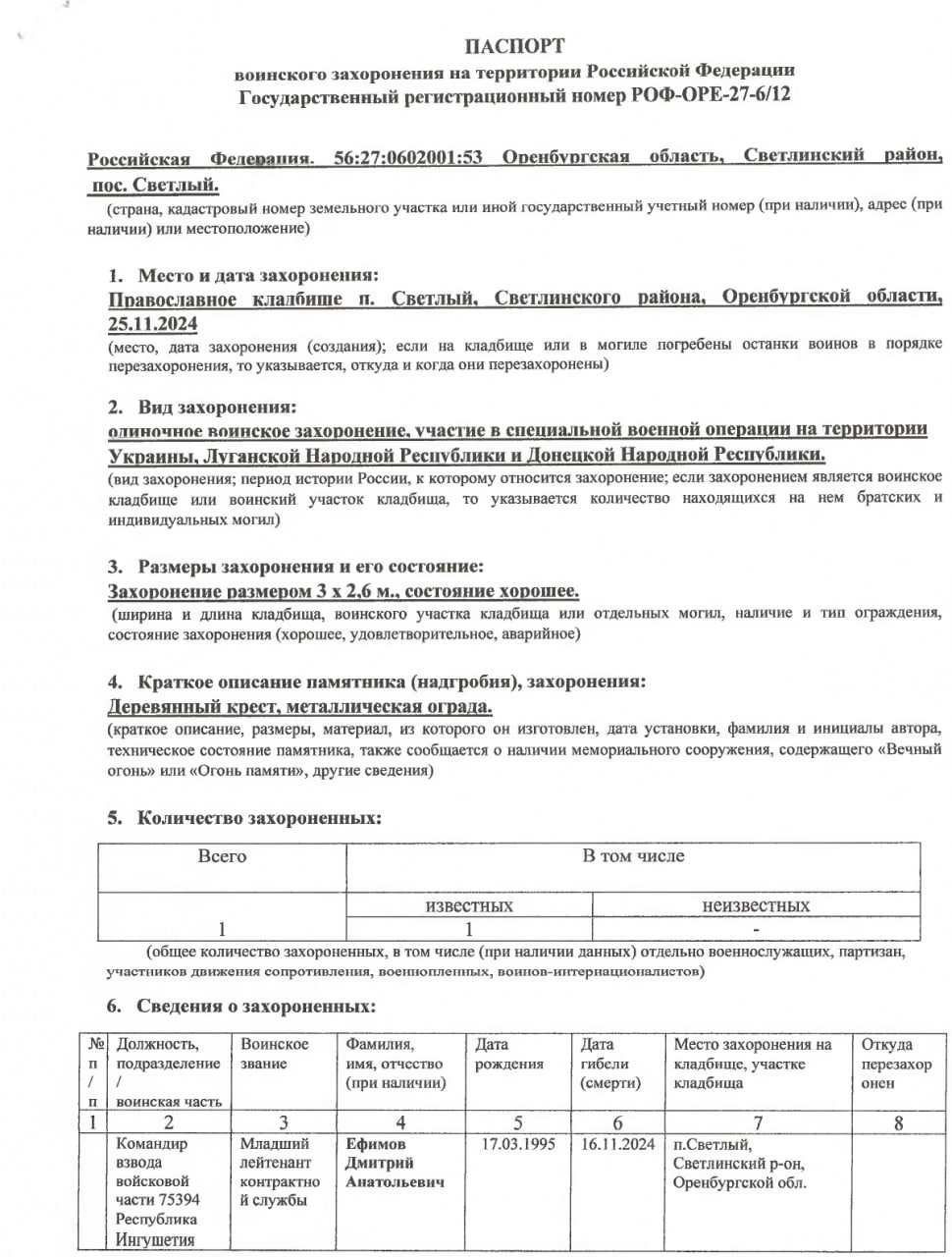 Подробные данные по данному погибшему