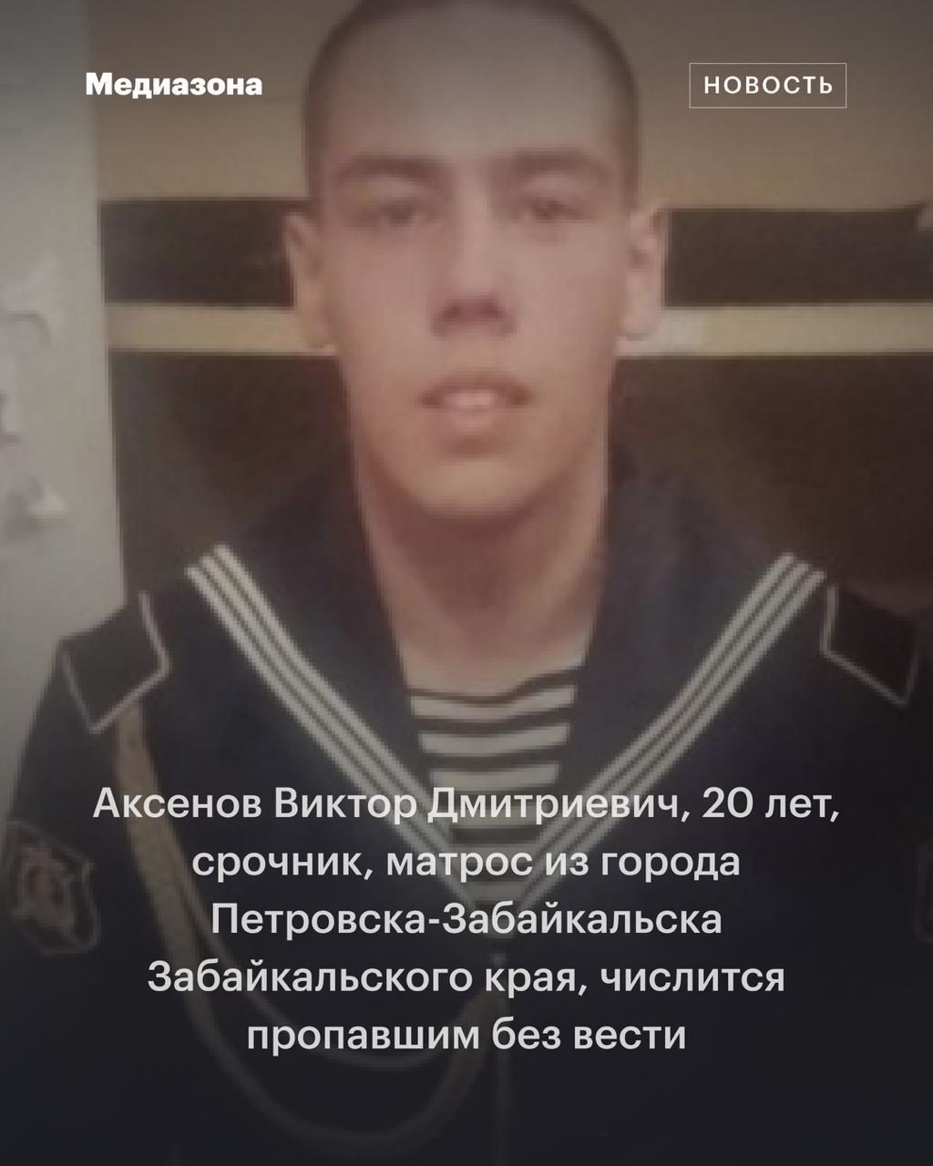 20 лет, срочник, матрос из города Петровска-Забайкальска Забайкальского края, числится пропавшим без вести
