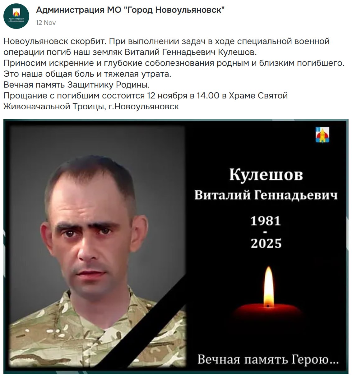 Дата сообщения о гибели: