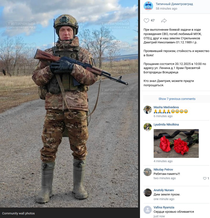 Дата сообщения о гибели: