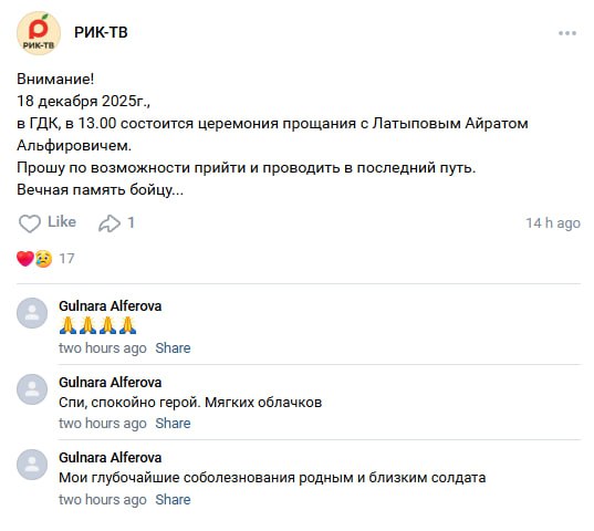 Дата сообщения о гибели: