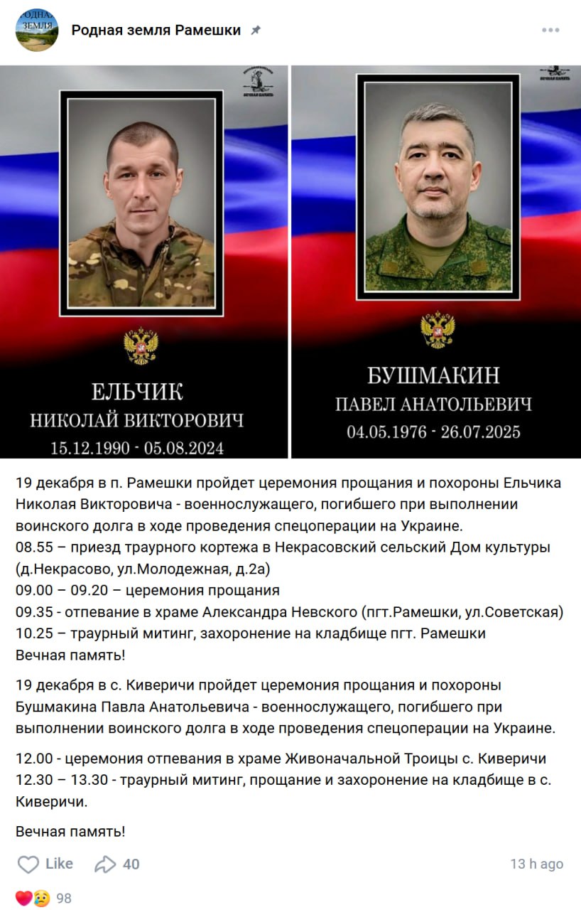 Дата сообщения о гибели: