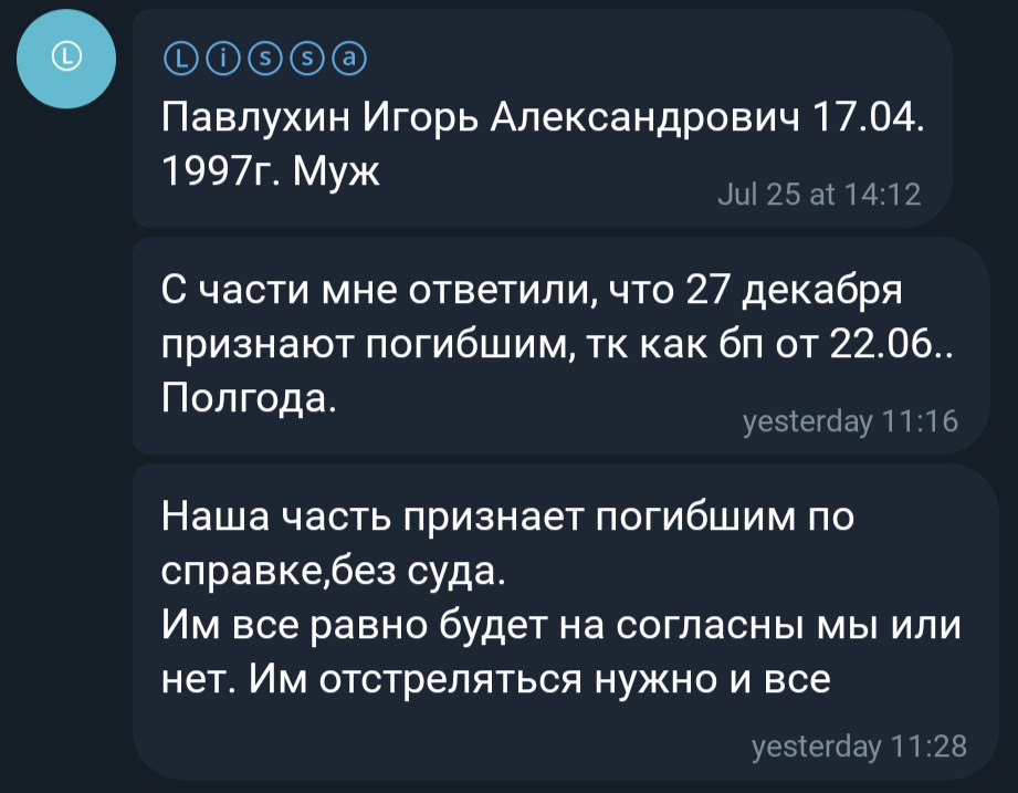 Дата сообщения о гибели: