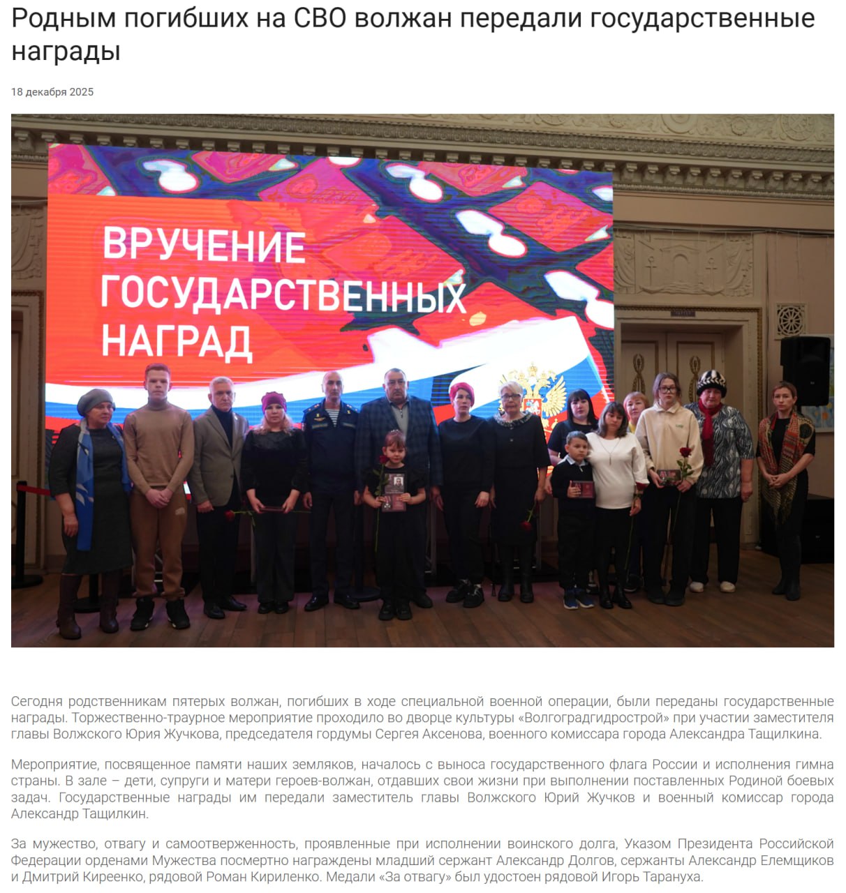 Дата сообщения о гибели: 19.12.2025