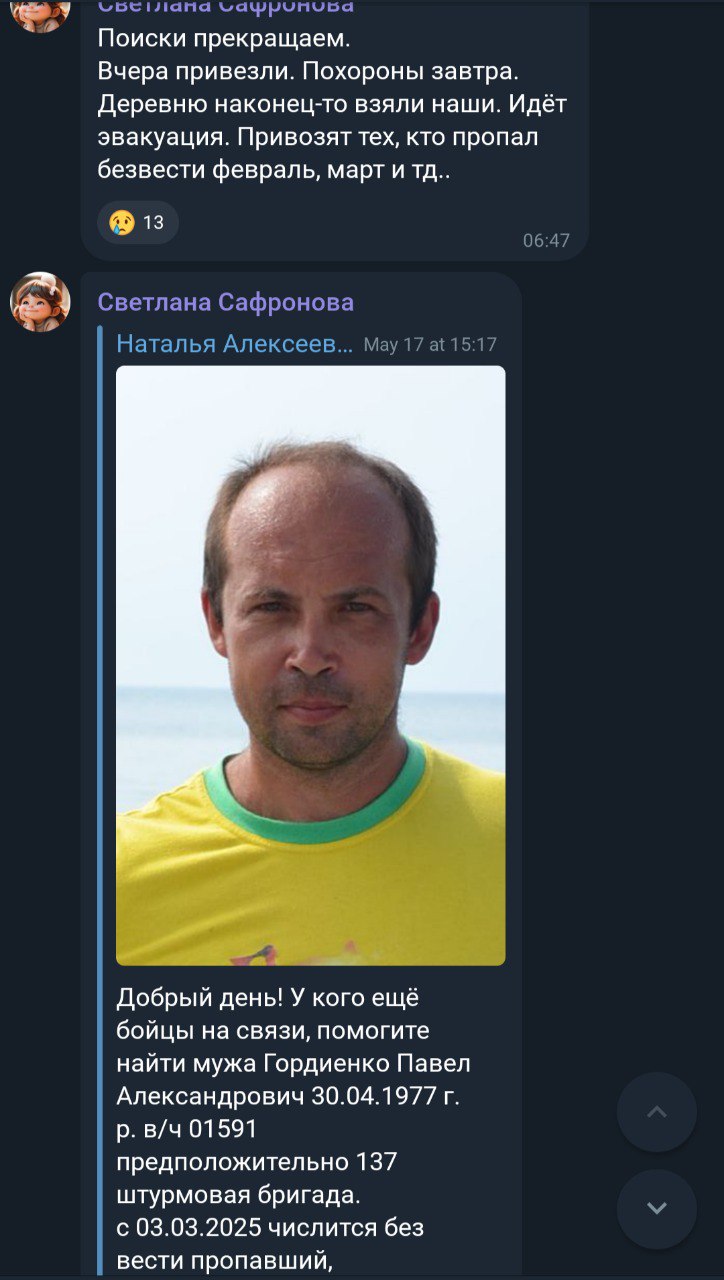 Дата сообщения о гибели: