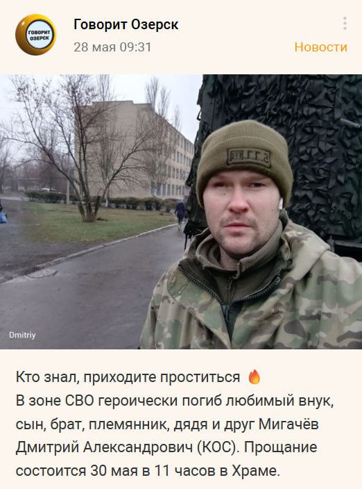 Дата сообщения о гибели: