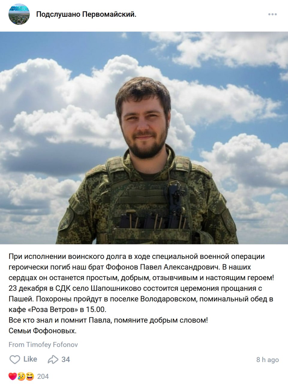 Дата сообщения о гибели: