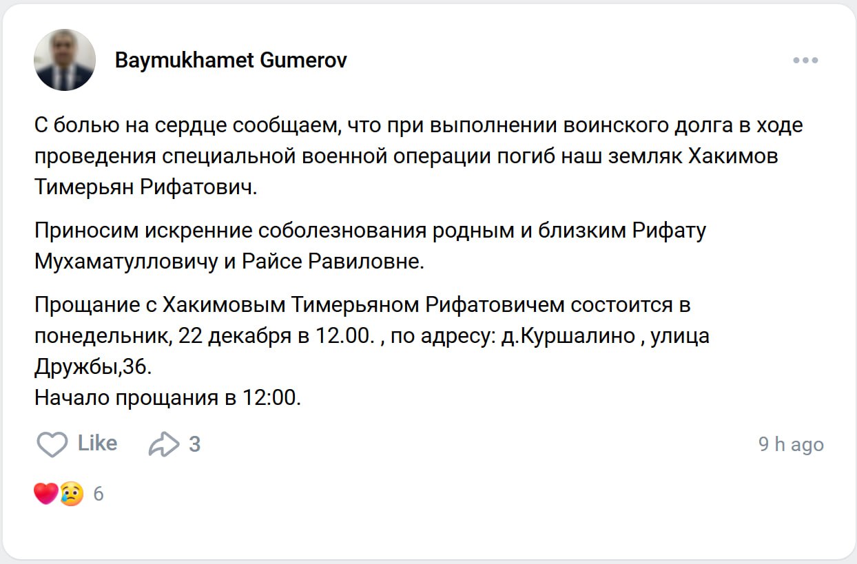 Дата сообщения о гибели: