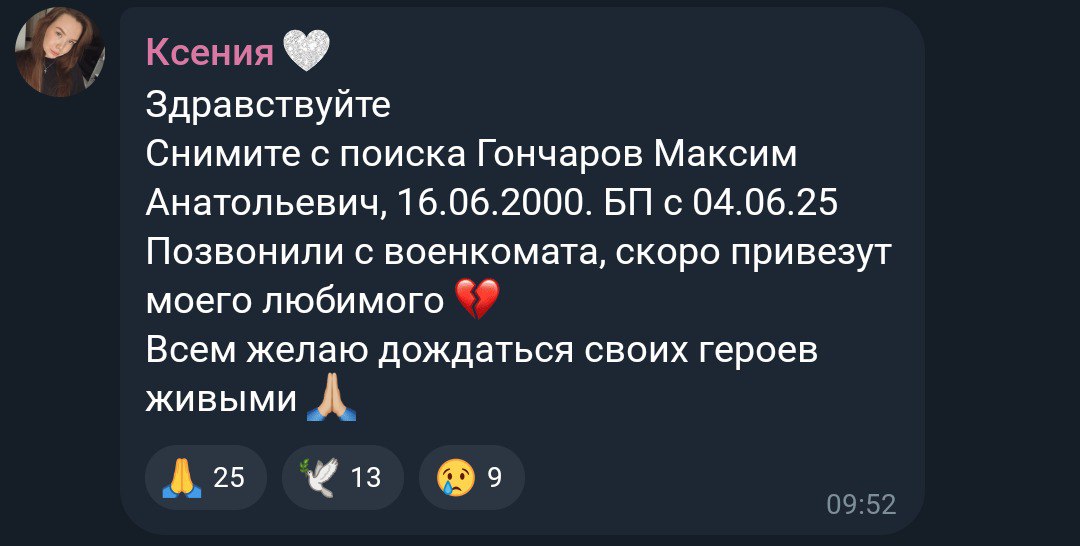 Дата сообщения о гибели: