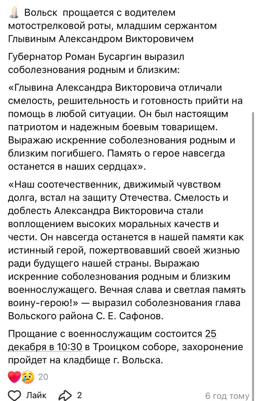 Дата сообщения о гибели: