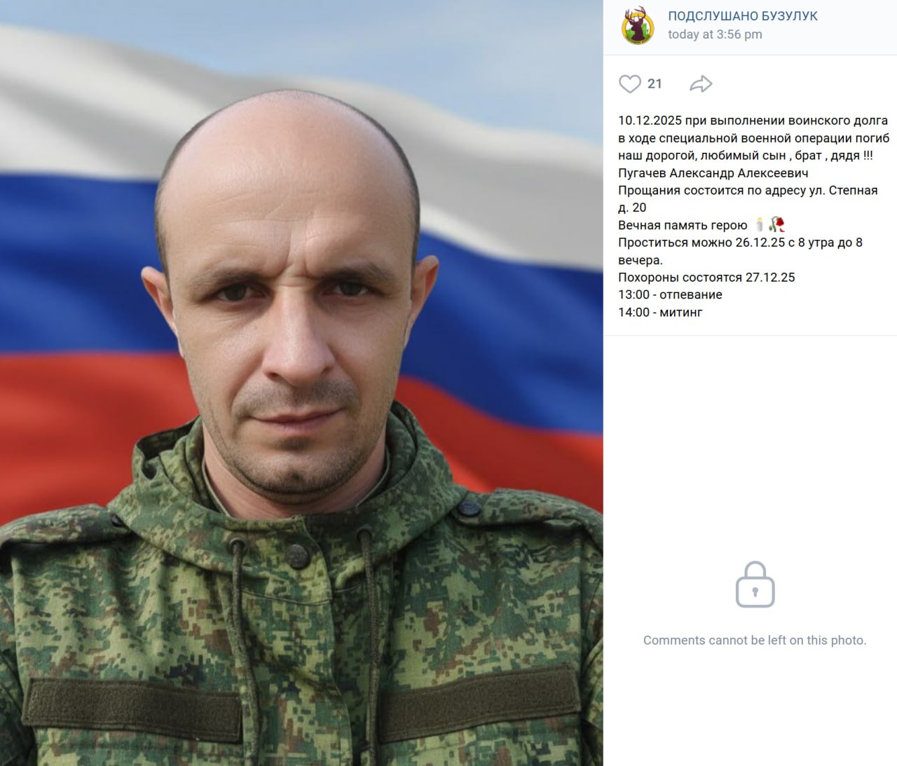 Дата сообщения о гибели: