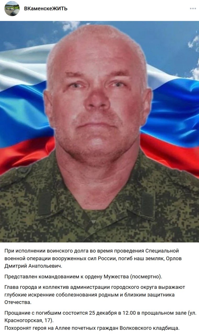 Дата сообщения о гибели: