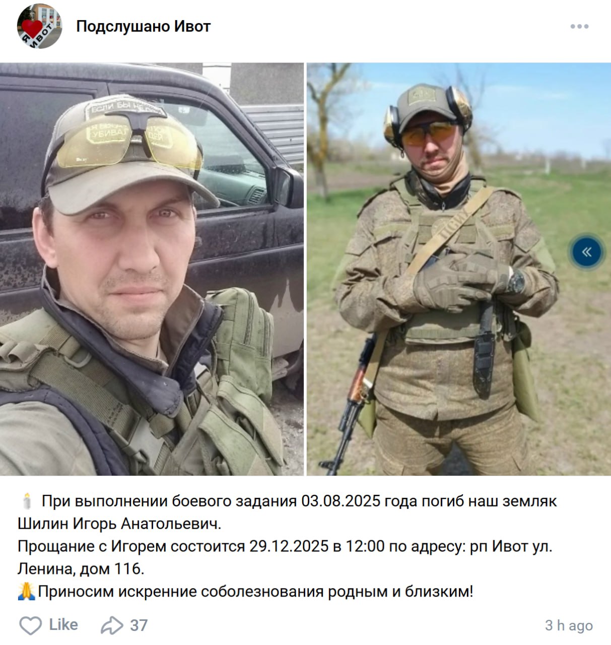 Дата сообщения о гибели: