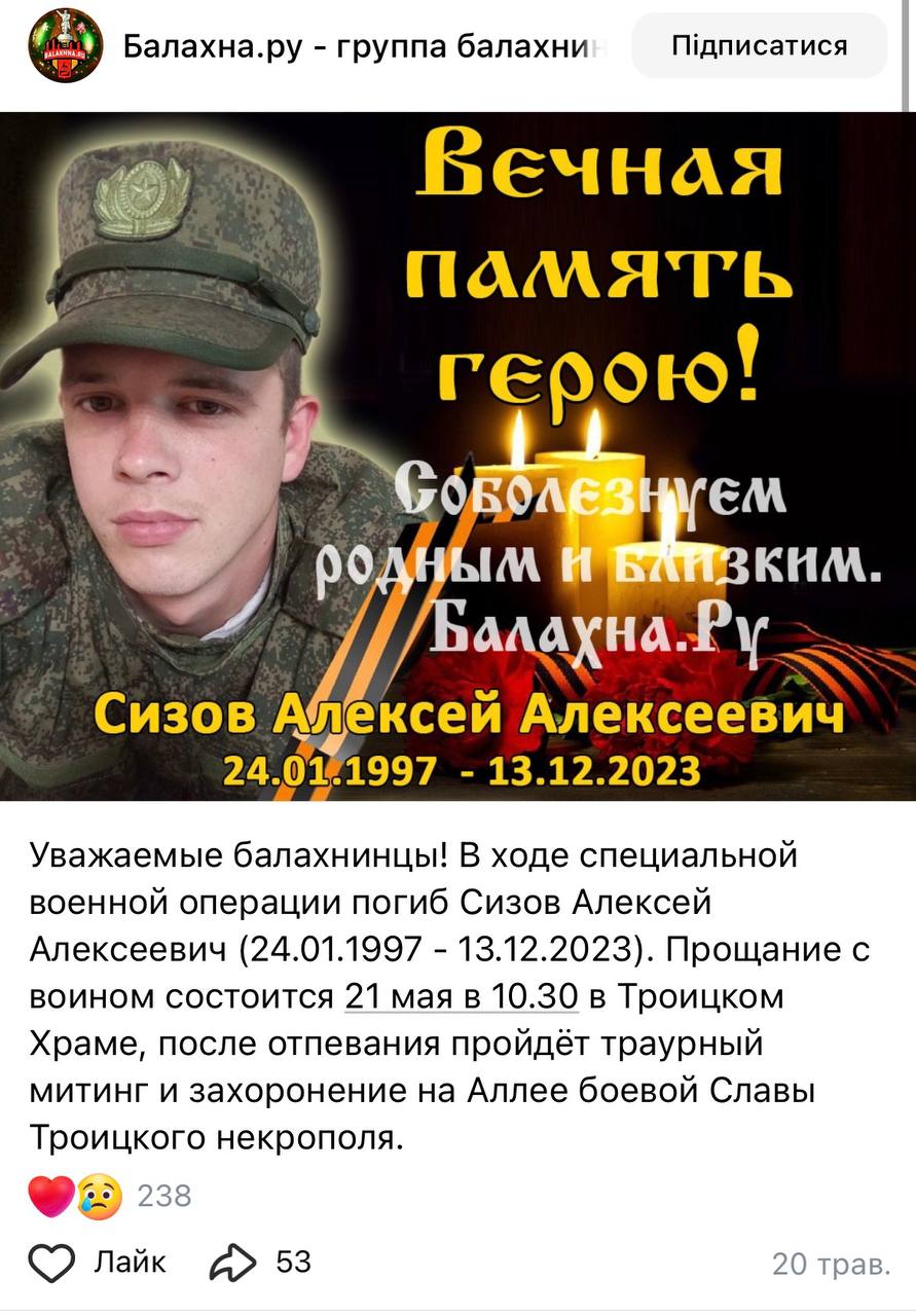 Дата сообщения о гибели: