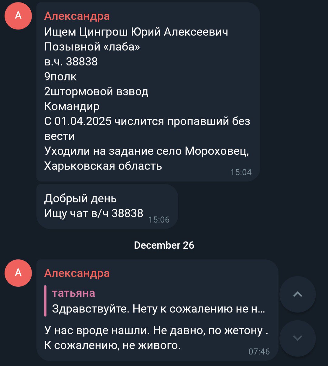 Дата сообщения о гибели: