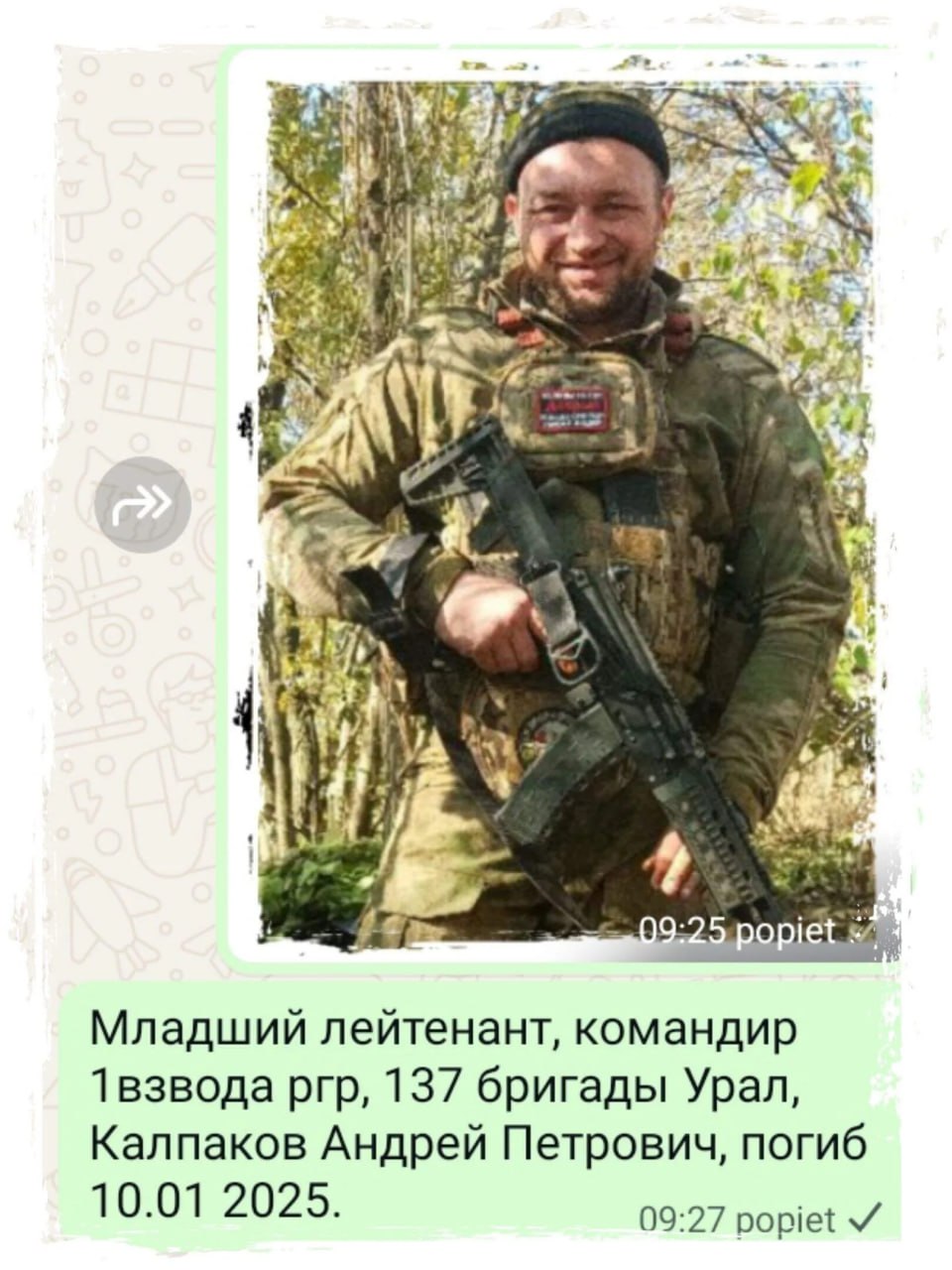 Дата сообщения о гибели: