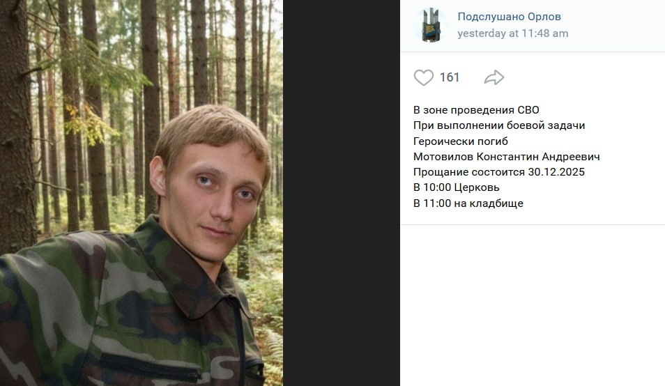 Дата сообщения о гибели: