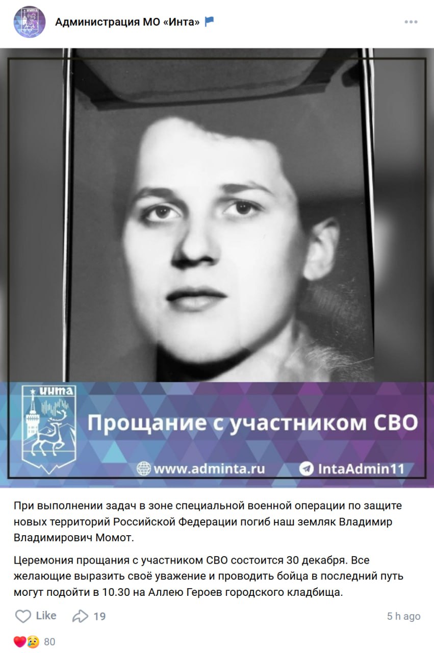 Дата сообщения о гибели:
